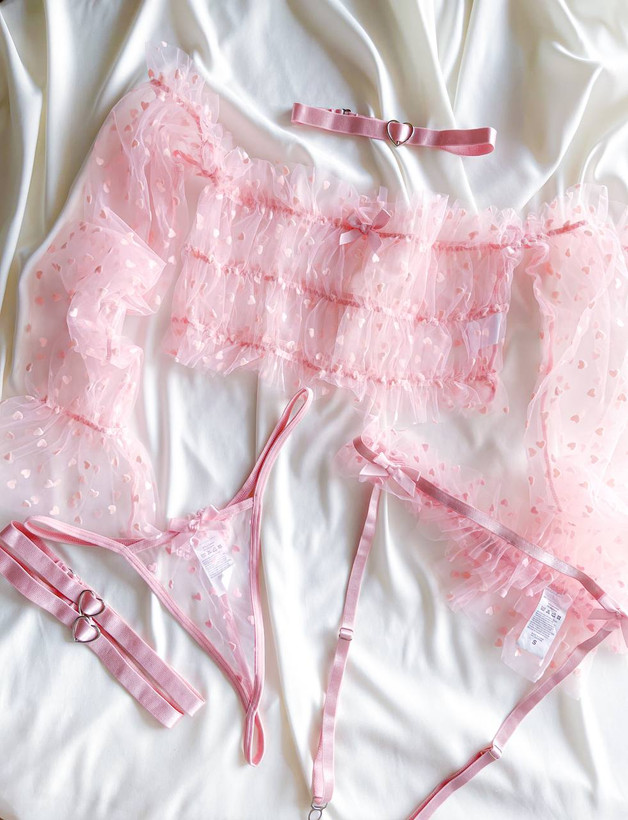 روی لباسش قلبای صورتی کوچولو برجسته داره😌😌😌