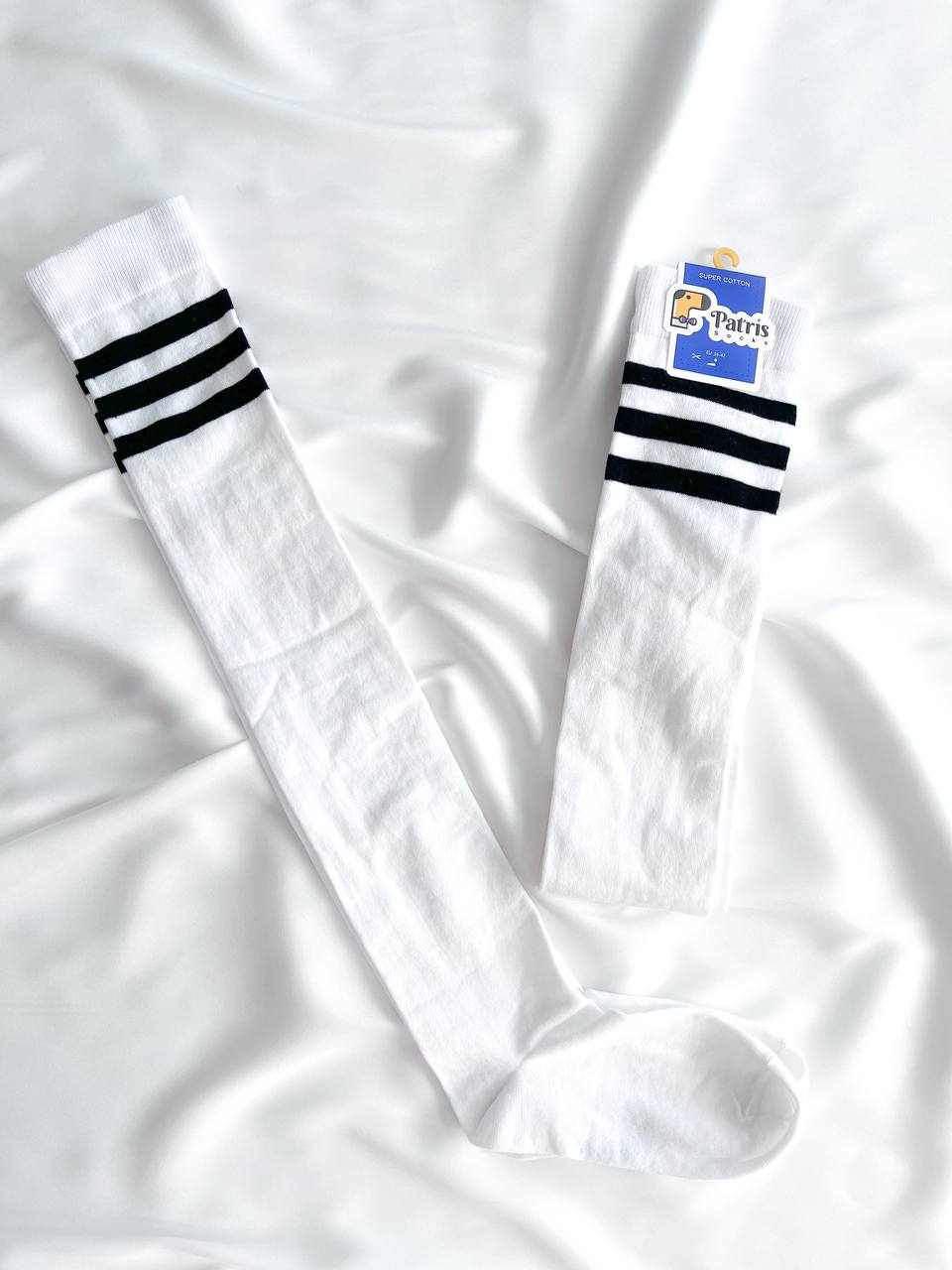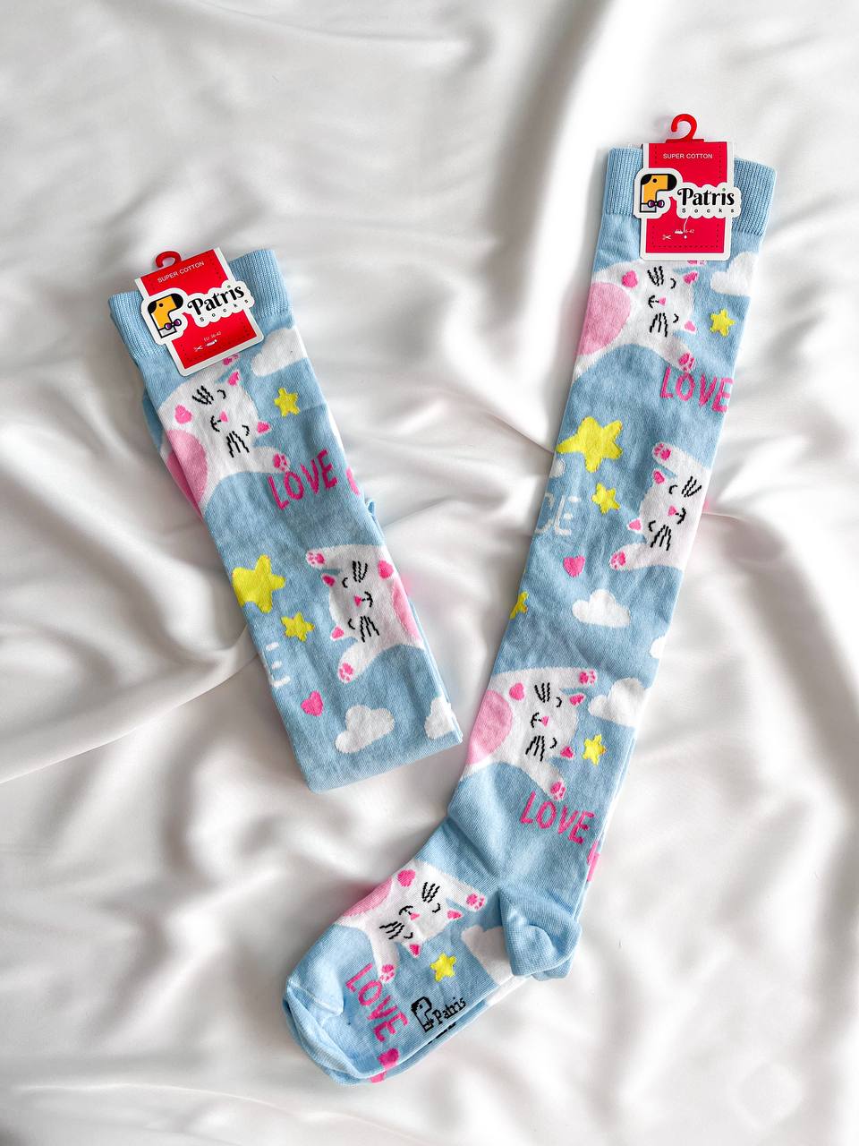 جوراب سفید و ابی طرحدار تا بالای زانو
